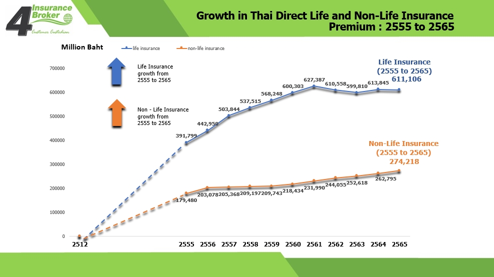ข้อมูลเบี้ยประกันภัยรับประกันภัยทุกประเภท 10 ปี ย้อนหลัง