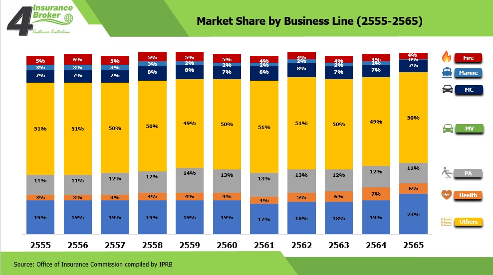 ข้อมูลสัดส่วนเบี้ยประกันภัยรับประกันภัยทุกประเภท ปี 2565