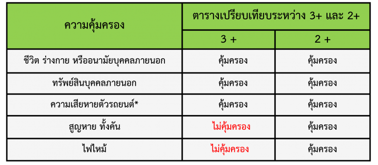 - ความรับผิดต่อความสูญหายและไฟไหม้ของตัวรถยนต์ (บางส่วนตามทุนประกันภัย)